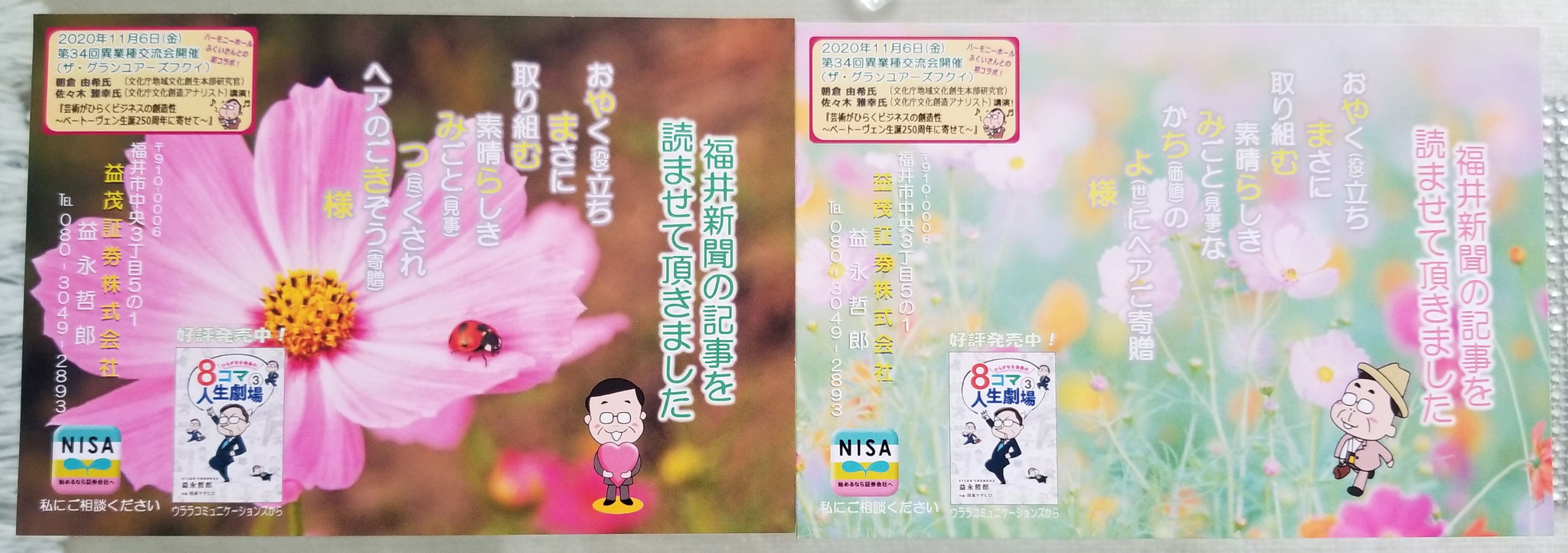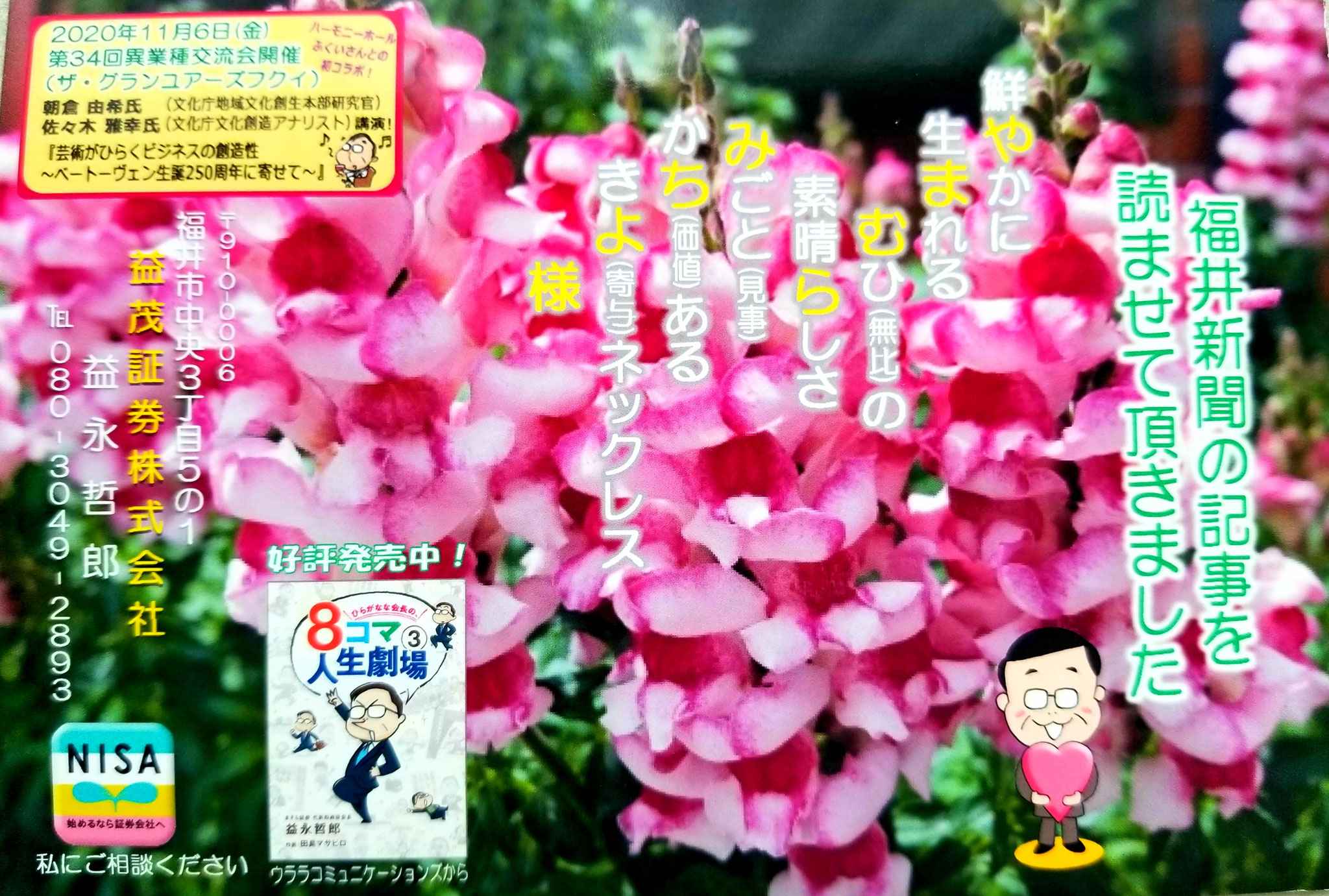 益永会長よりお葉書いただきました♪